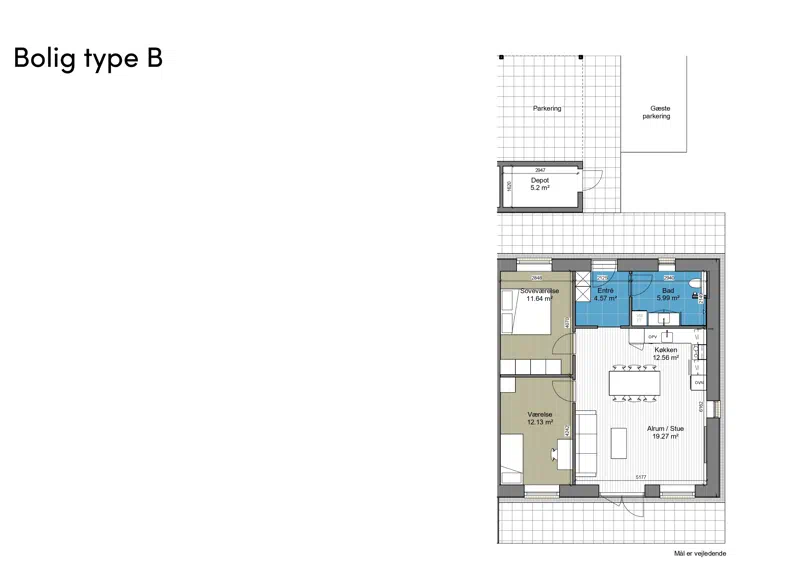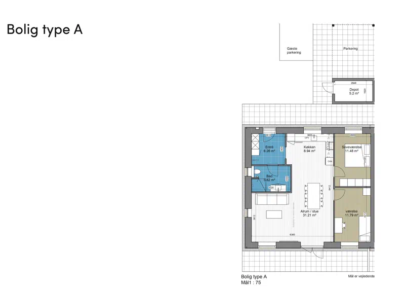 Der bygges 13 boliger på ca. 80 m2 og 10 boliger på ca. 90 m2, de store boliger er indrettet således at det er muligt selv at sætte en væg op i boligen og hermed få et ekstra værelse. OBS der skal søges om tilladelse til dette.